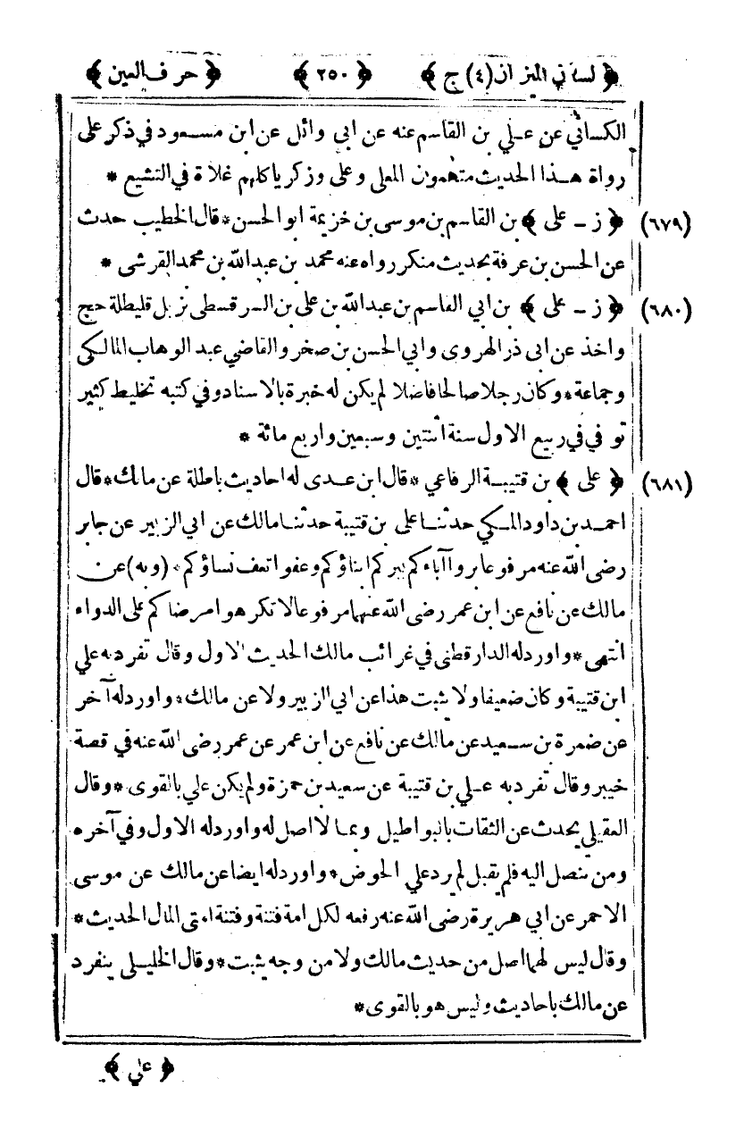 [679] "زعلي" بن القاسم بن موسى بن خزيمة أبو الحسن قال الخطيب حدث عن الحسن بن عرفة بحديث منكر رواه عنه محمد بن عبد الله بن محمدالقرشي.