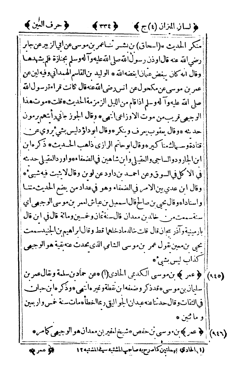 [946] "عمر" بن موسى بن حفص شيخ لعفير بن معدان هو الوجيهي كمامر.