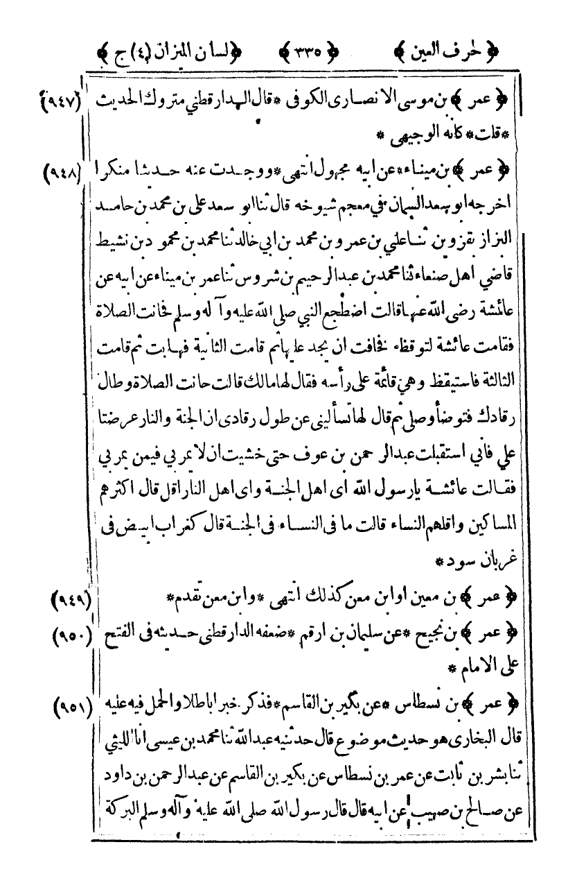 [947] "عمر" بن موسى الأنصاري الكوفي قال الدارقطني متروك الحديث قلت كأنه الوجيهي.