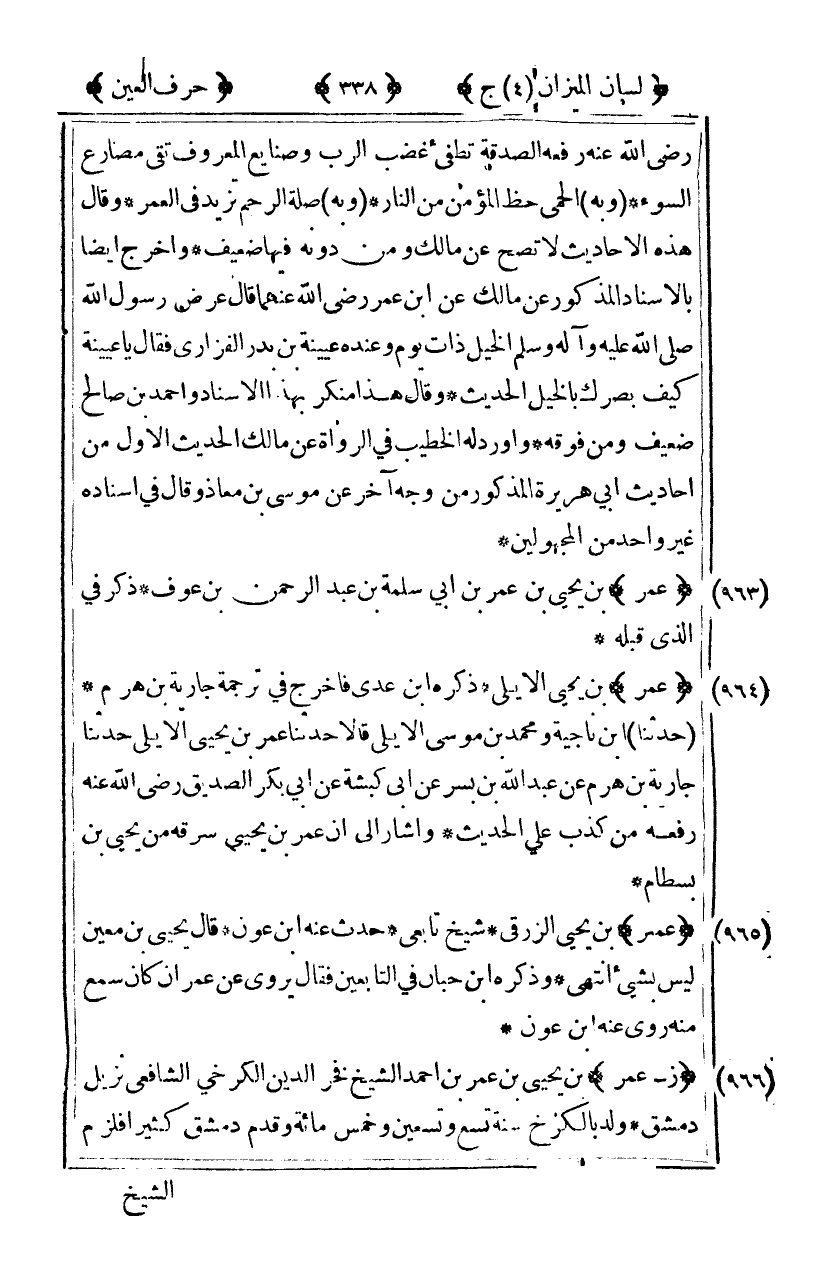 [966] "زعمر" بن يحيى ابن عمر بن أحمد الشيخ فخر الدين الكرخي الشافعي نزيل دمشق ولد بالكرخ سنة تسع وتسعين وخمس مائة وقدم دمشق كثيرا فلزم