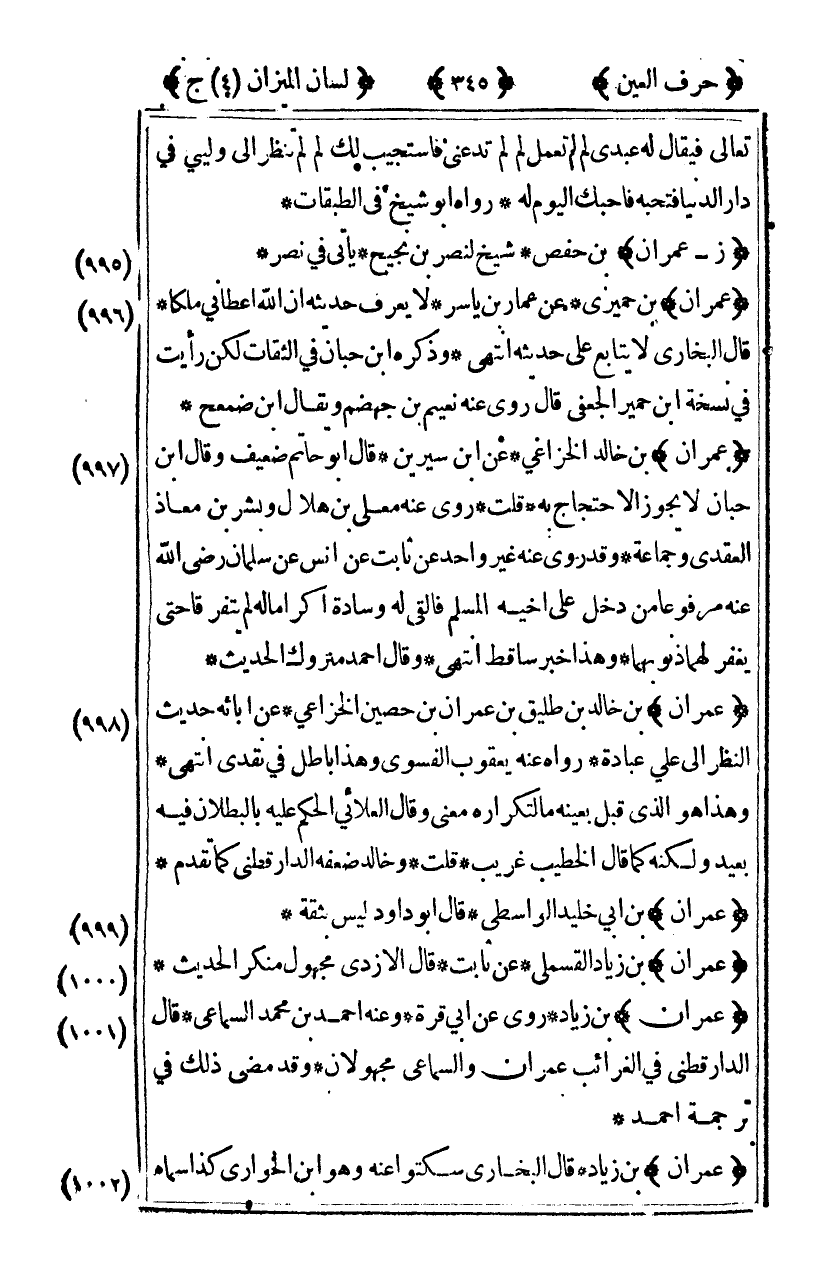 [1000] "عمران" بن زياد القسملي عن ثابت قال الأزدي مجهول منكر الحديث.