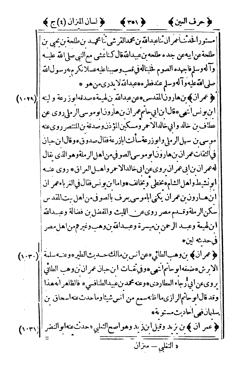 [1031] "عمران" بن يزيد وقيل بن زيد وهو أصح الثعلبي1 حدث عنه أبو النضر
