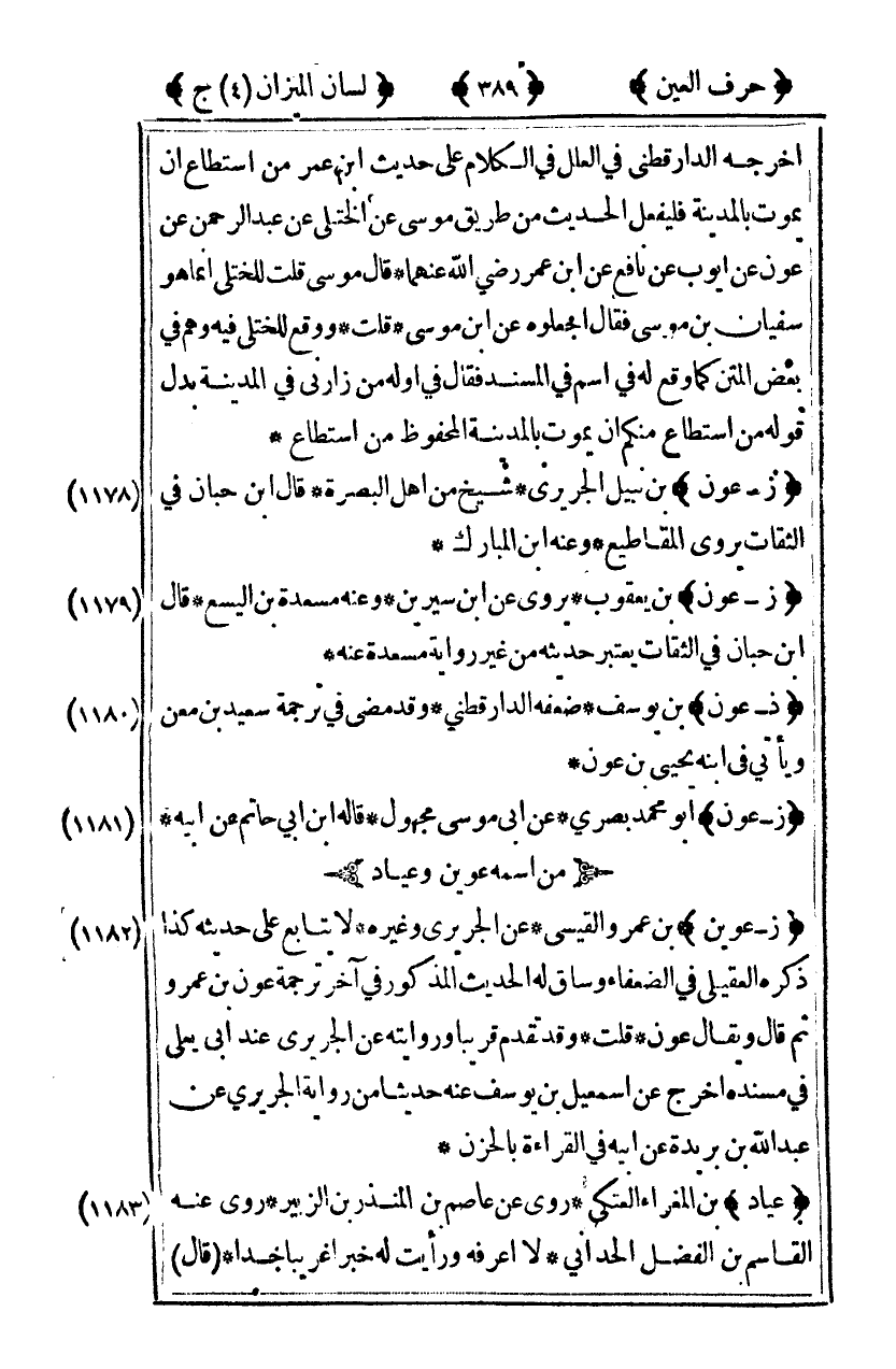 [1183] "عياد" بن المغراء العتكي روى عن عاصم بن المنذر بن الزبير روى عنه القاسم بن الفضل الحداني لا أعرفه ورأيت له خبرا غريبا جدا [قال]