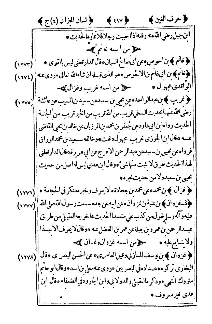 [1273] "غانم" بن أحوص عن أبي صالح السمان قال الدارقطني ليس بالقوي.