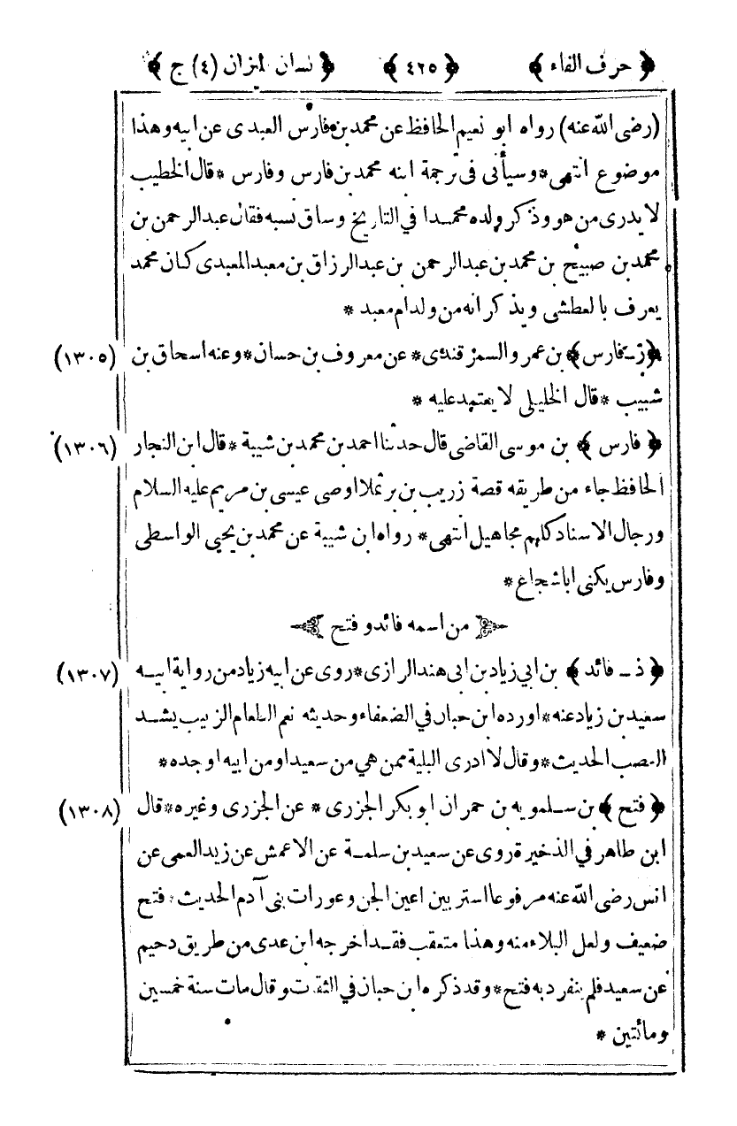 [1305] "زفارس" بن عمرو السمرقندي عن معروف بن حسان وعنه إسحاق بن شبيب قال الخليلي لا يعتمد عليه.