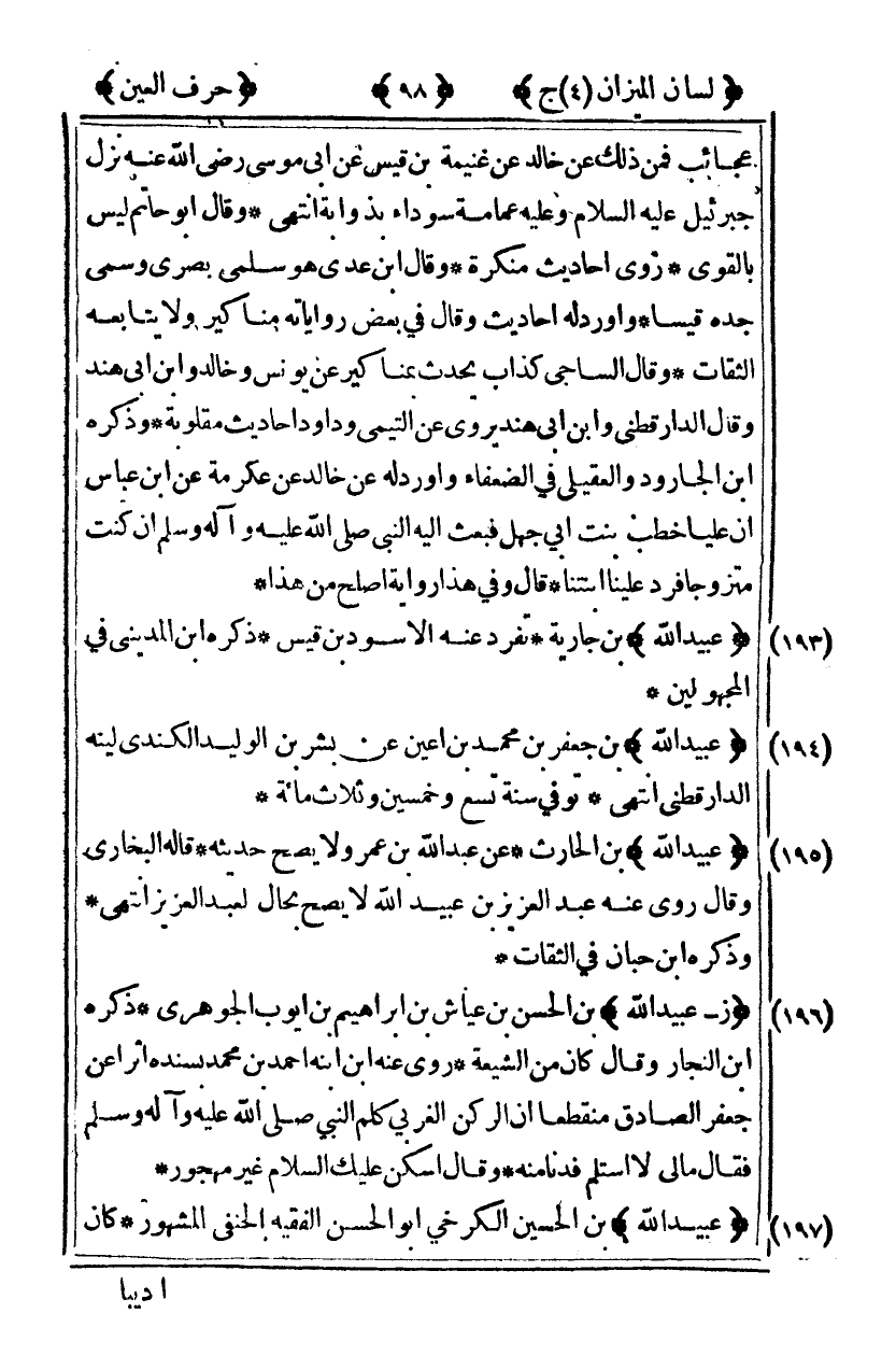 [194] "عبيد الله" بن جعفر بن محمد بن اعين عن بشر بن الوليد الكندي لينه الدارقطني انتهى توفي سنة تسع وخمسين وثلاث مائة.
