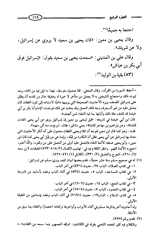 وقال يحيى بن معين: ((كان يحيى بن سعيد لا يروي عن إسرائيل، ولا عن شريك)).
