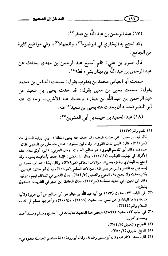 سمعت أبا العباس محمد بن يعقوب يقول: سمعت العباس بن محمد يقول: سمعت يحيى بن معين يقول: قد حدث يحيى بن سعيد عن عبد الرحمن بن عبد الله بن دينار، وحدث عنه الأشيب، وحدث عنه أبو النضر فحسبه أن يحدث عنه يحيى بن سعيد عنه.