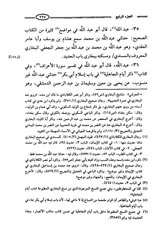 35- عبد الله، قال أبو عبد الله في مواضع كثيرة من الكتاب الصحيح: حدثني عبد الله بن محمد سمع هشام بن يوسف وأبا عامر العقدي، وهو عبد الله بن محمد بن عبد الله بن جعفر الجعفي البخاري المعروف بالمسندي ومسكنه ببخارى باب الحديد.