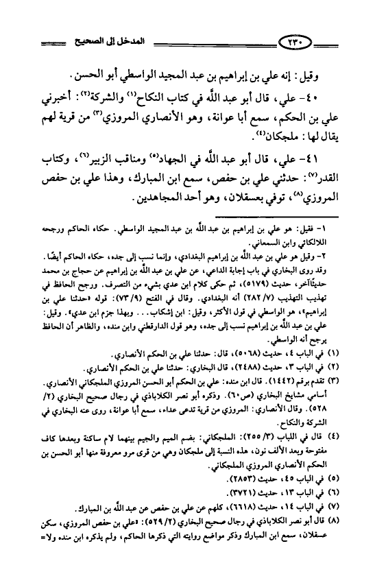 40- علي، قال أبو عبد الله في كتاب النكاح والشركة: أخبرني علي بن الحكم، سمع أبا عوانة، وهو الأنصاري المروزي من قرية لهم يقال لها: ملجكان.