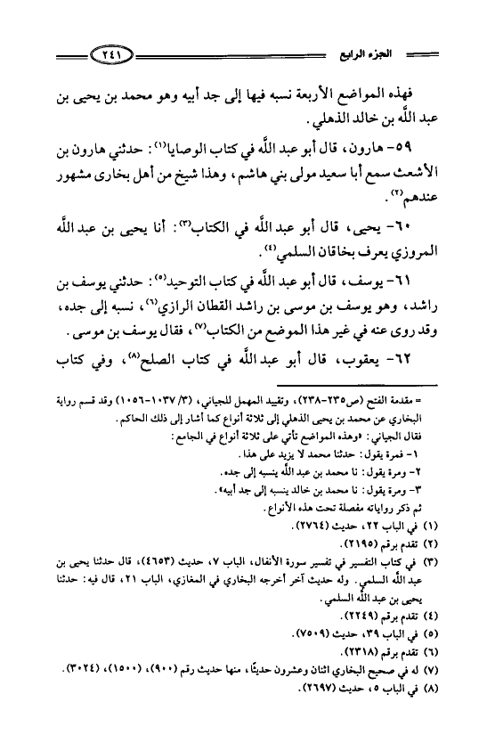 61- يوسف، قال أبو عبد الله في كتاب التوحيد: حدثني يوسف بن راشد، وهو يوسف بن موسى بن راشد القطان الرازي، نسبه إلى جده، وقد روى عنه في غير هذا الموضع من الكتاب، فقال يوسف بن موسى.