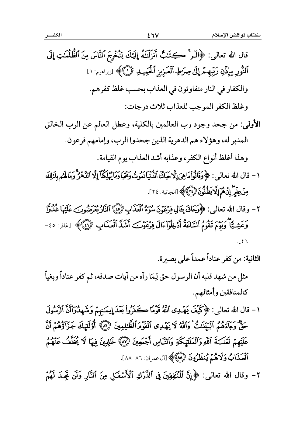 وغلظ الكفر الموجب للعذاب ثلاث درجات: