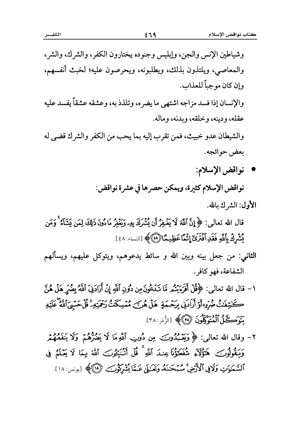 نواقض الإسلام كثيرة، ويمكن حصرها في عشرة نواقض: