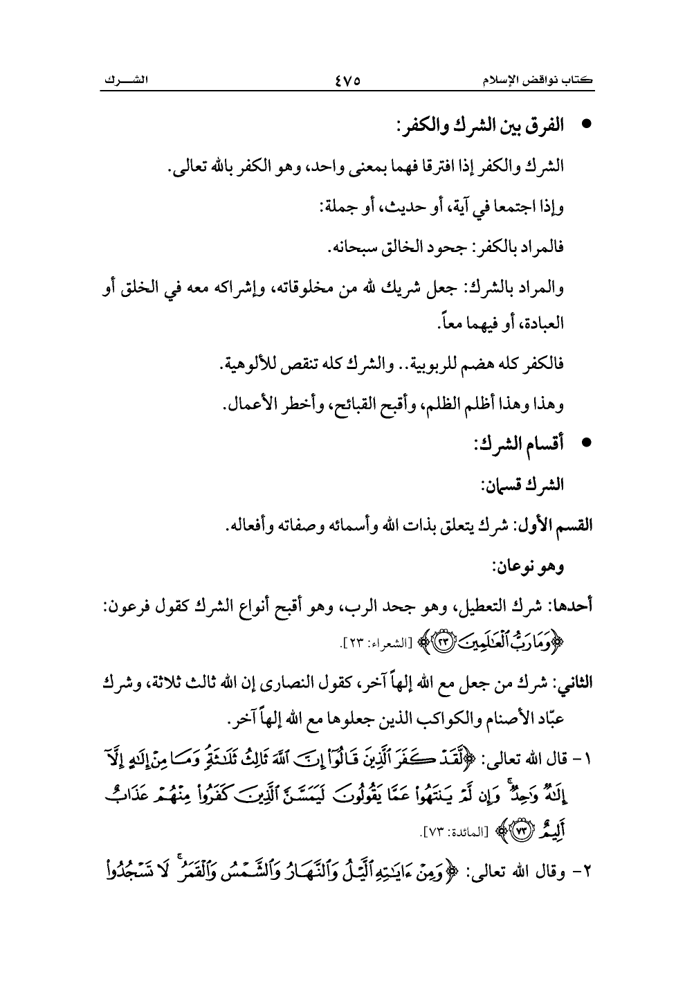 فالكفر كله هضم للربوبية .. والشرك كله تنقص للألوهية.