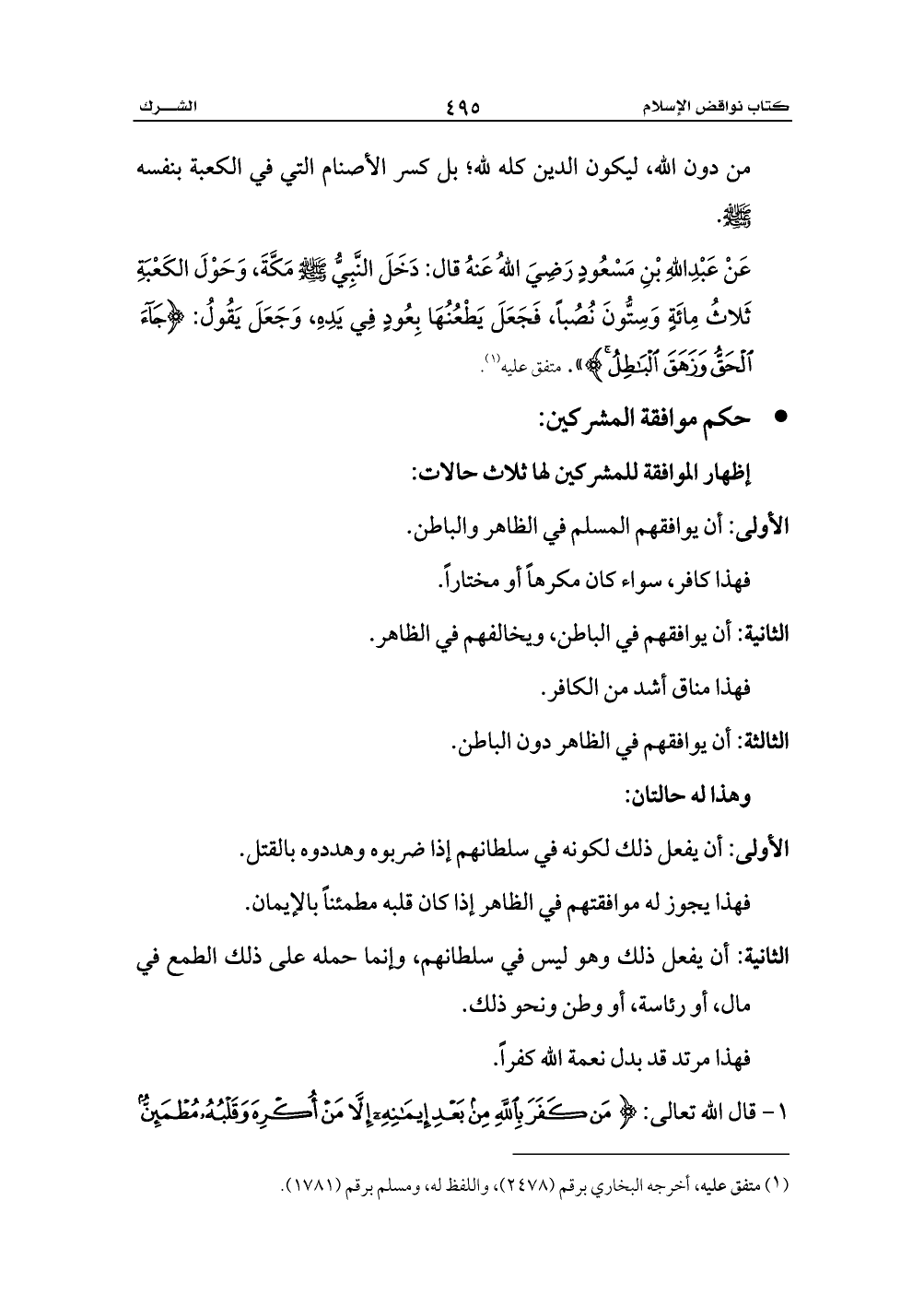 إظهار الموافقة للمشركين لها ثلاث حالات: