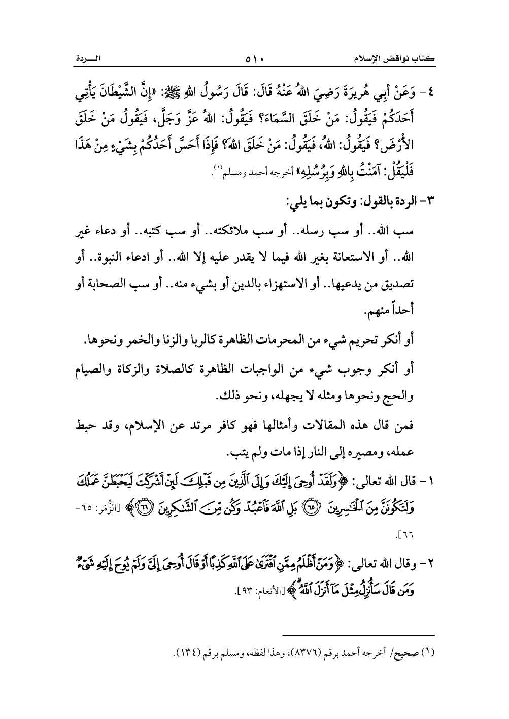 1 - قال الله تعالى: {وَلَقَدْ أُوحِيَ إِلَيْكَ وَإِلَى الَّذِينَ مِنْ قَبْلِكَ لَئِنْ أَشْرَكْتَ لَيَحْبَطَنَّ عَمَلُكَ وَلَتَكُونَنَّ مِنَ الْخَاسِرِينَ (65) بَلِ اللَّهَ فَاعْبُدْ وَكُنْ مِنَ الشَّاكِرِينَ (66)} [الزُّمَر: 65 - 66].
