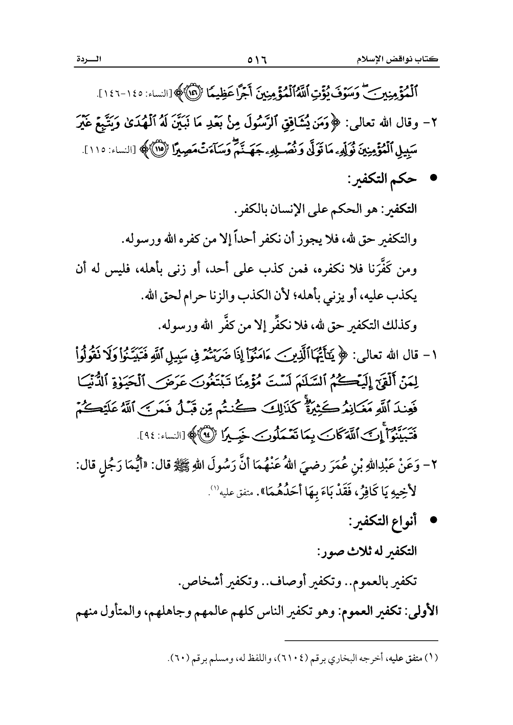 تكفير بالعموم .. وتكفير أوصاف .. وتكفير أشخاص.