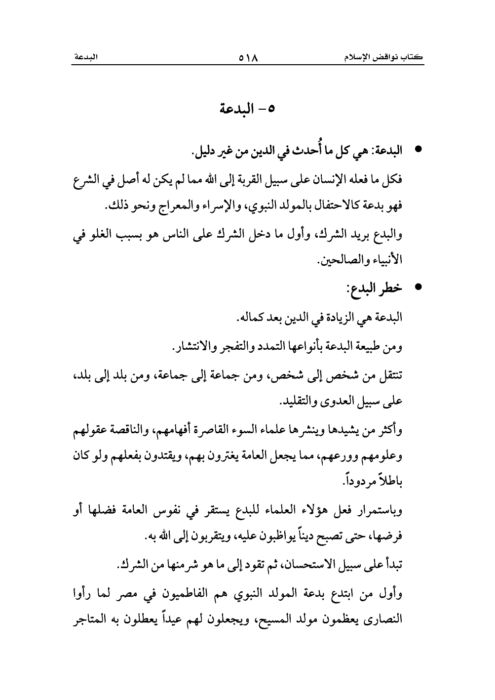 - البدعة: هي كل ما أُحدث في الدين من غير دليل.