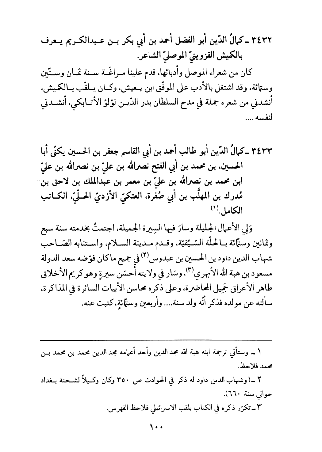 3433 - كمال الدّين أبو طالب أحمد بن أبي القاسم جعفر بن الحسين يكنّى أبا