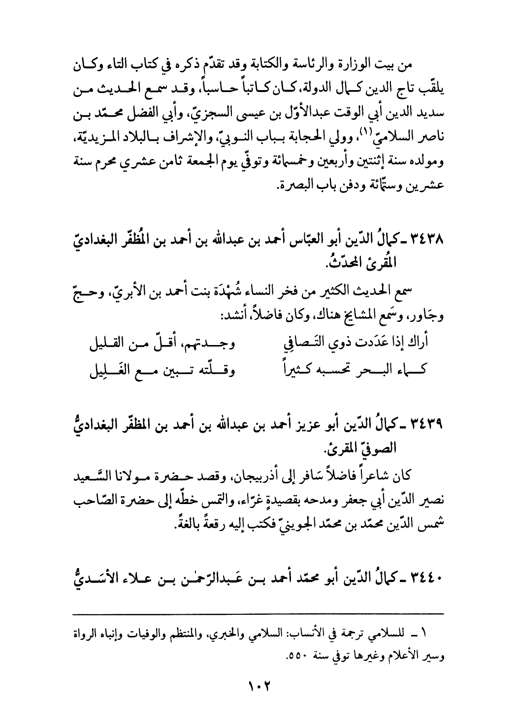 3438 - كمال الدّين أبو العبّاس أحمد بن عبد الله بن أحمد بن المظفّر البغداديّ