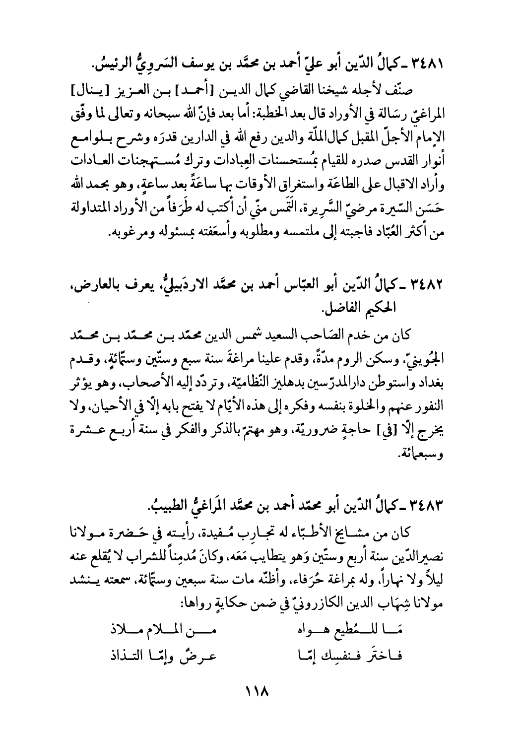3483 - كمال الدّين أبو محمّد أحمد بن محمّد المراغيّ الطبيب.