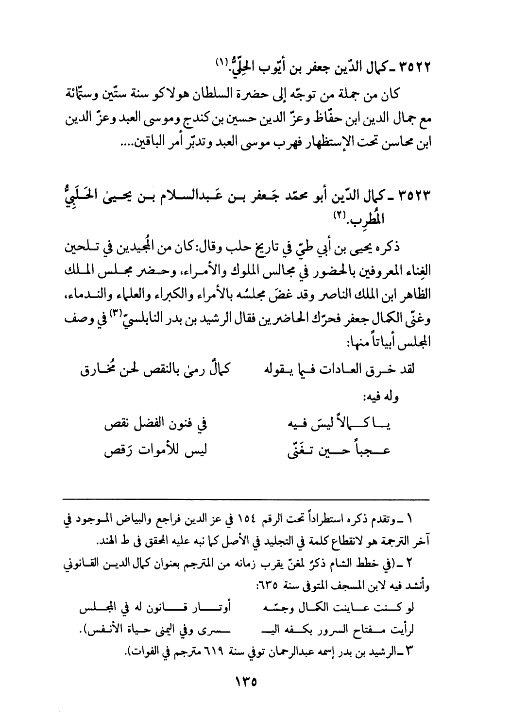 3523 - كمال الدّين أبو محمّد جعفر بن عبد السلام بن يحيى الحلبيّ