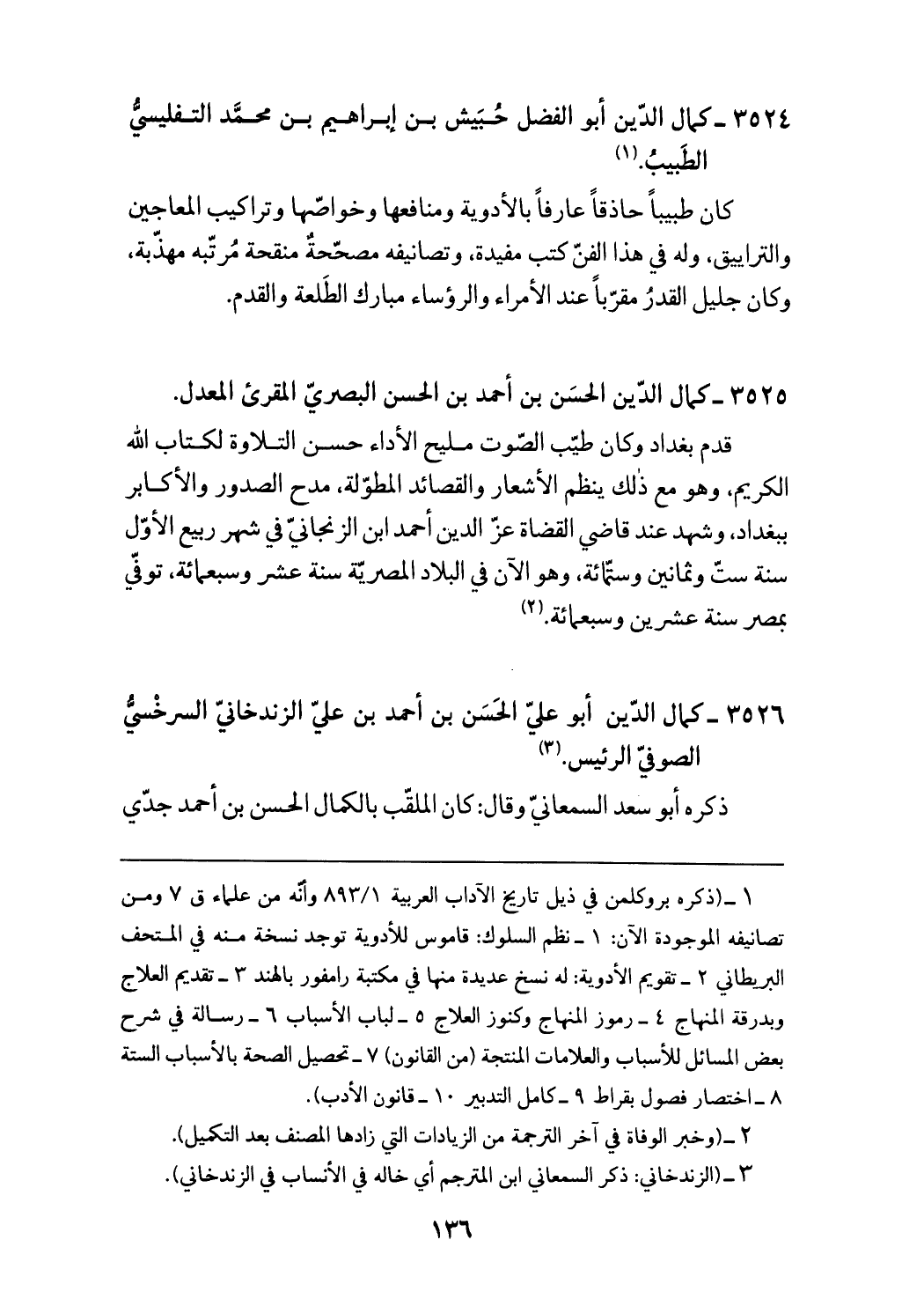 3524 - كمال الدّين أبو الفضل حبيش بن إبراهيم بن محمّد التفليسيّ الطبيب. (¬1)