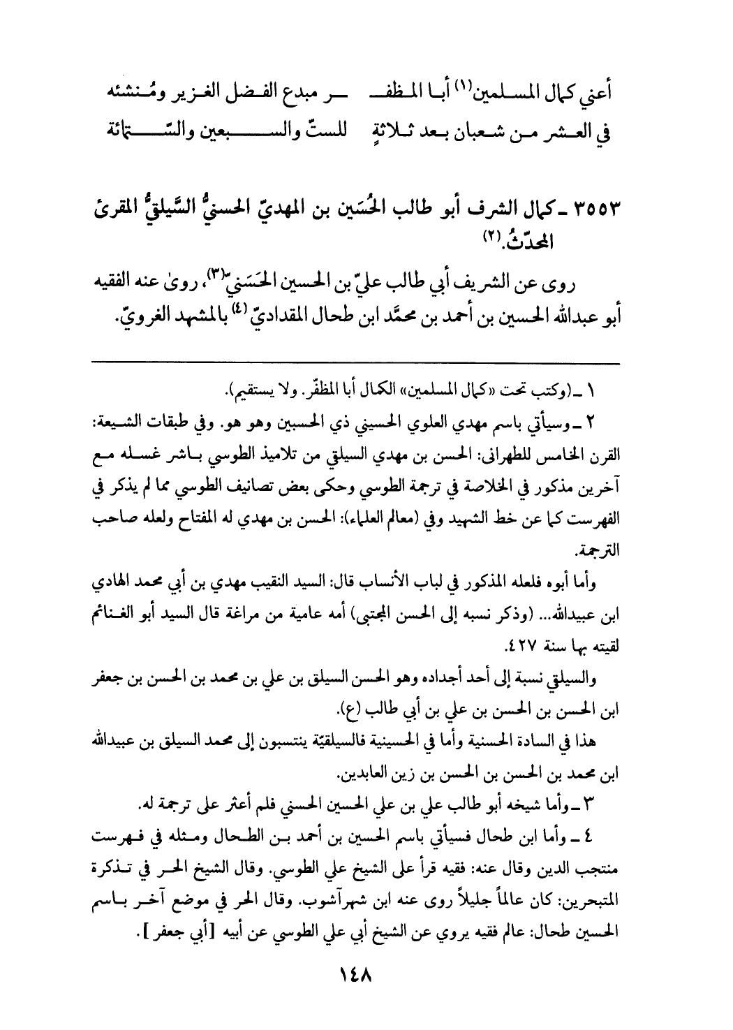 3553 - كمال الشرف أبو طالب الحسين بن المهديّ الحسنيّ السّيلقيّ المقرئ