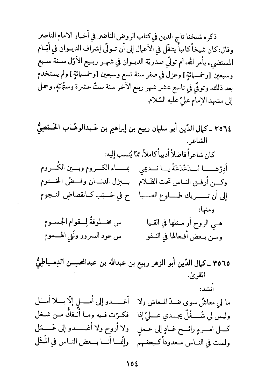 3564 - كمال الدّين أبو سليمان ربيع بن إبراهيم بن عبد الوهّاب الحمصيّ