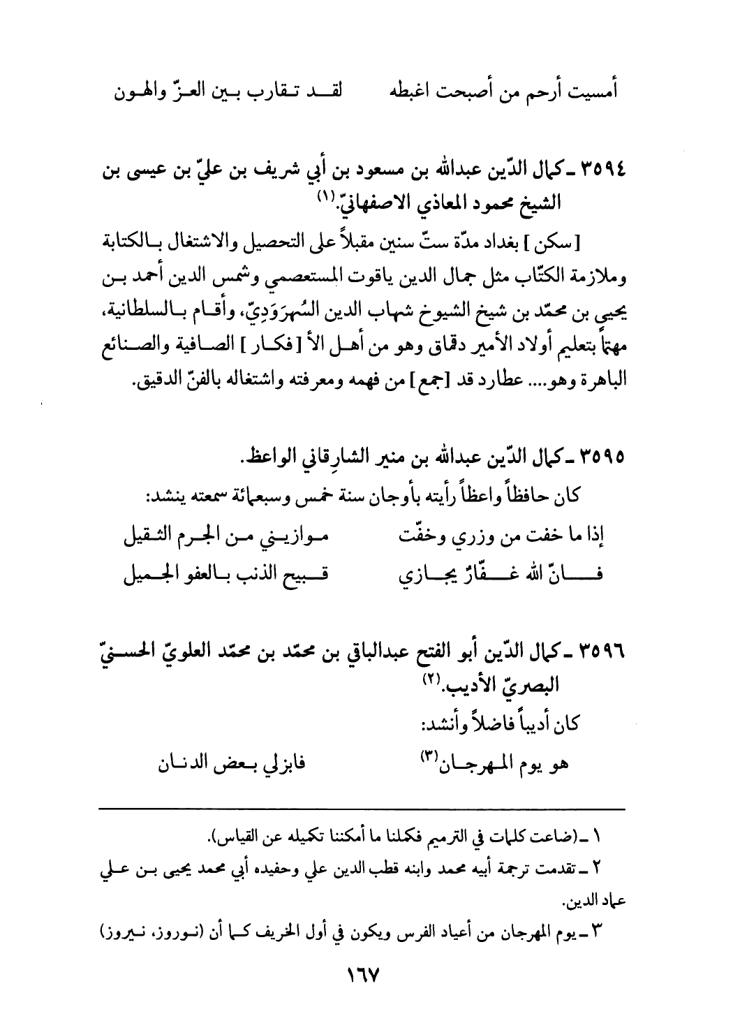 3595 - كمال الدّين عبد الله بن منير الشارقاني الواعظ.