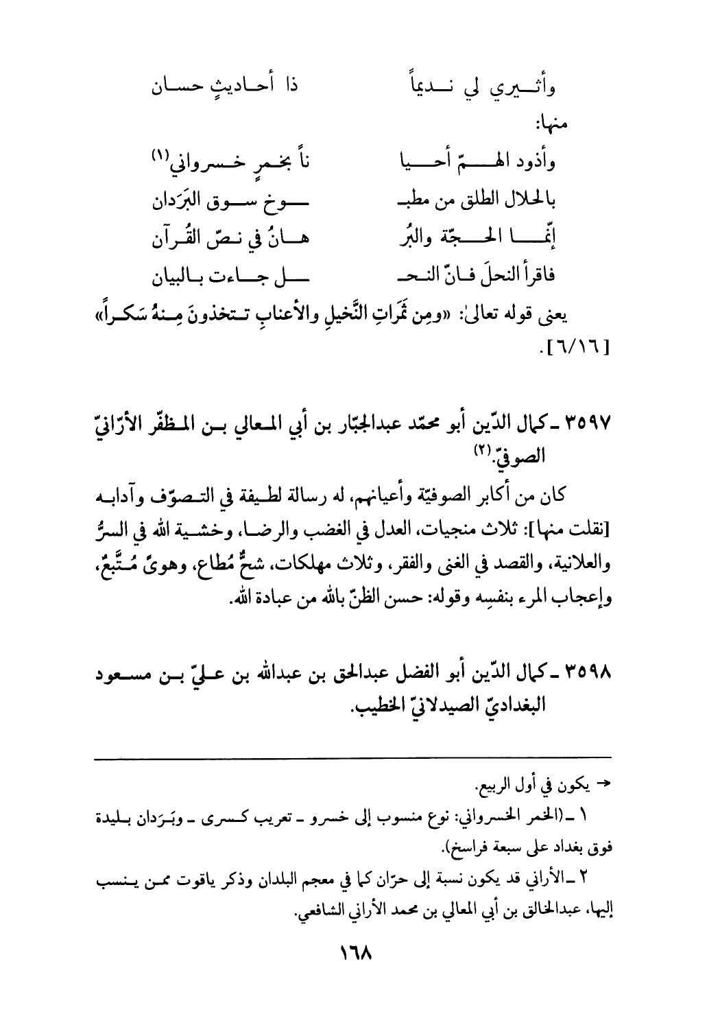 3597 - كمال الدّين أبو محمّد عبد الجبّار بن أبي المعالي بن المظفّر الأرّانيّ