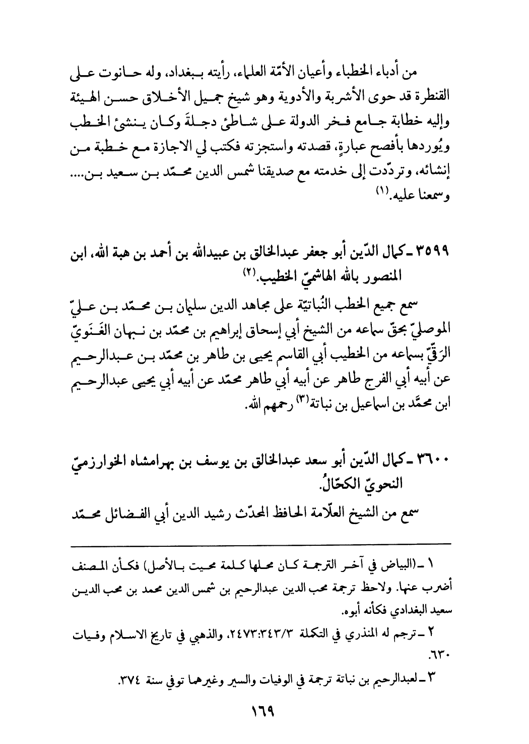 3599 - كمال الدّين أبو جعفر عبد الخالق بن عبيد الله بن أحمد بن هبة الله، ابن