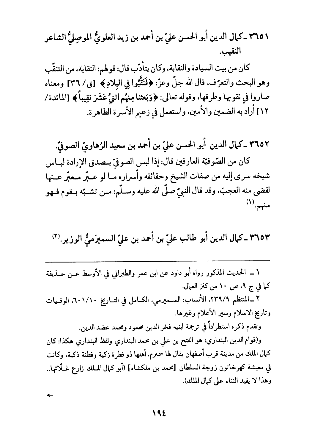 3653 - كمال الدين أبو طالب عليّ بن أحمد بن عليّ السميرميّ الوزير. (¬2)