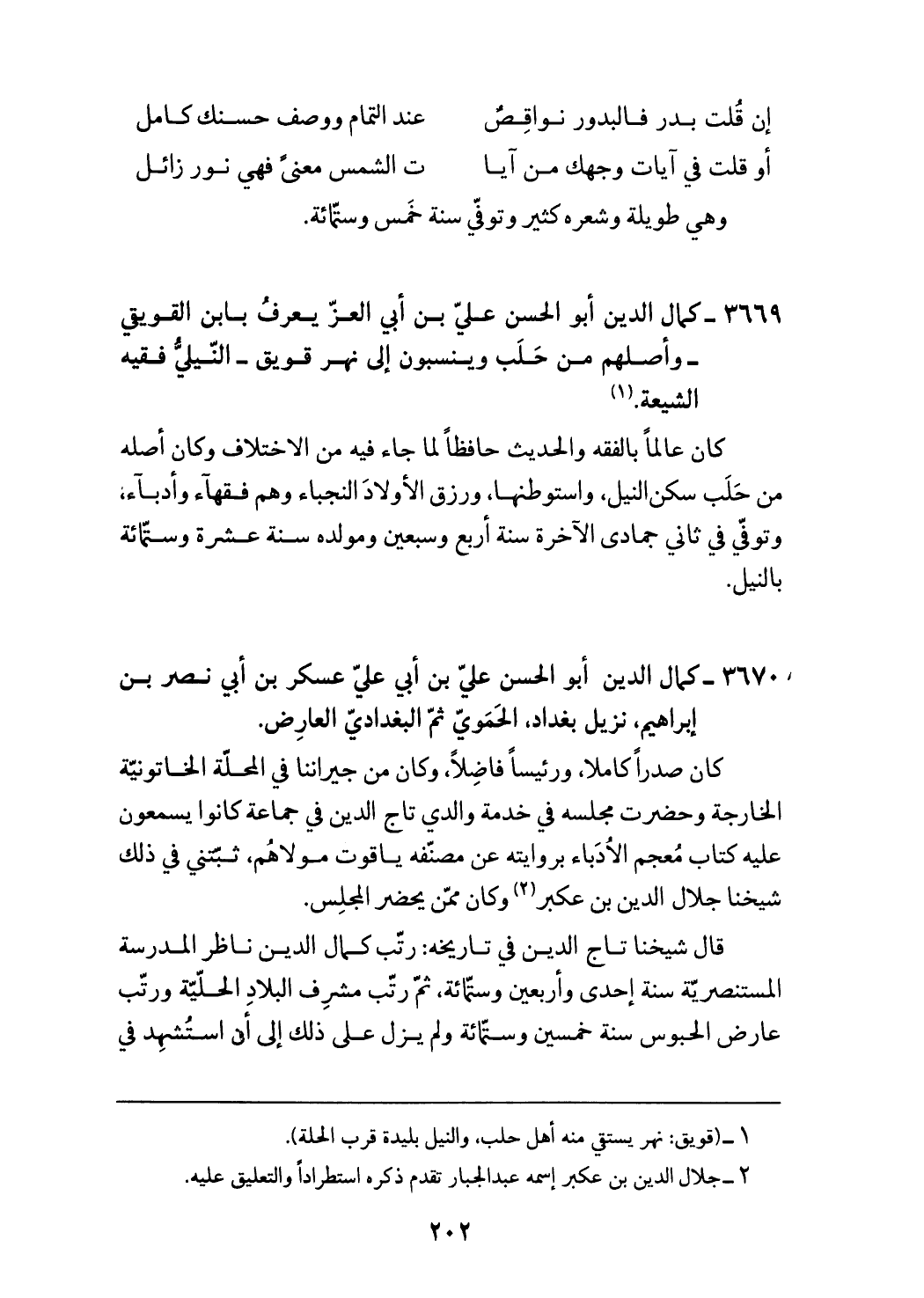 3669 - كمال الدين أبو الحسن عليّ بن أبي العزّ يعرف بابن القويقي