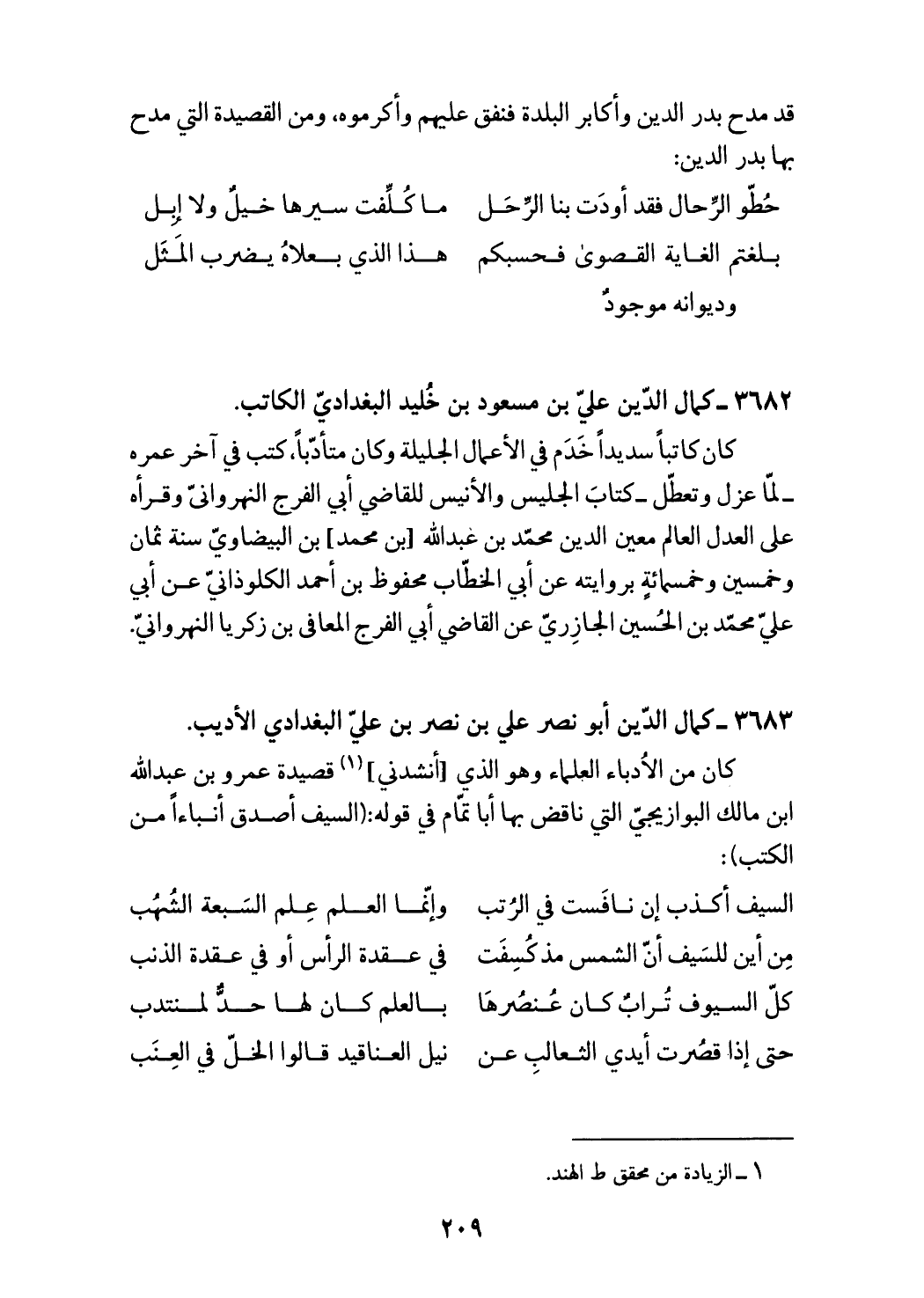 3682 - كمال الدّين عليّ بن مسعود بن خليد البغداديّ الكاتب.