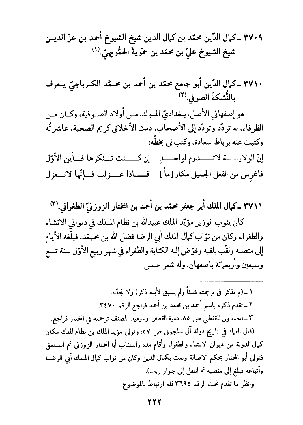 3711 - كمال الملك أبو جعفر محمّد بن أحمد بن المختار الزوزنيّ الطغرائي. (¬3)