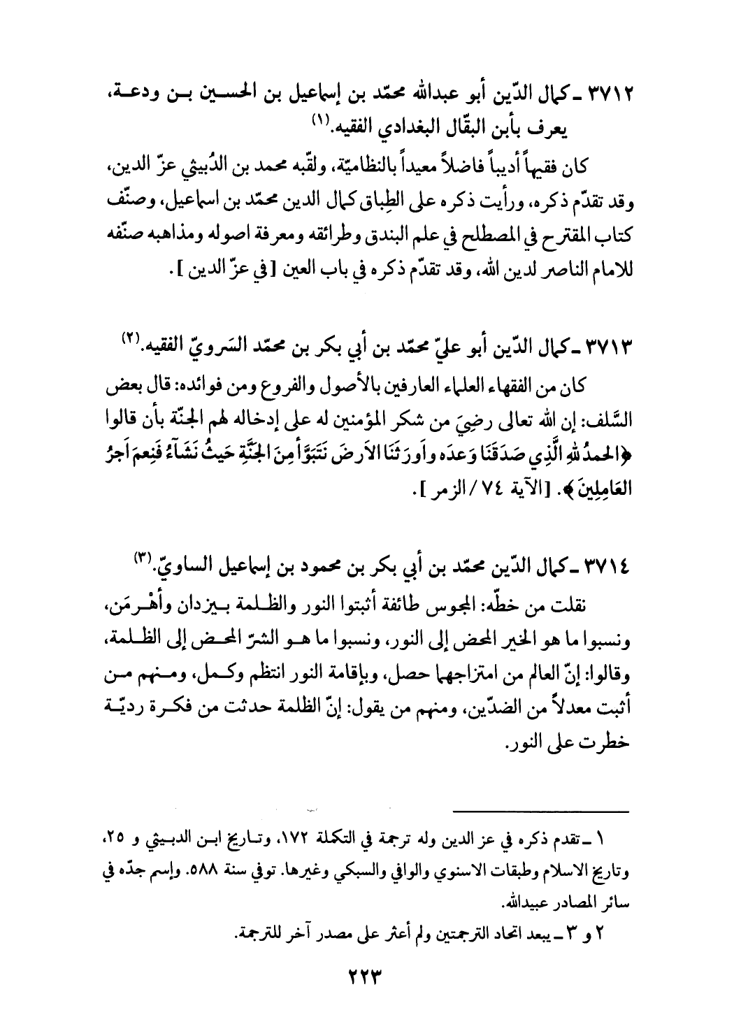 (¬1) تقدم ذكره في عزّ الدين وله ترجمة في التكملة 172، وتاريخ ابن الدبيثي و 25، وتاريخ الاسلام وطبقات الاسنوي والوافي والسبكي وغيرها. توفي سنة 588.واسم جدّه في سائر المصادر عبيد الله.