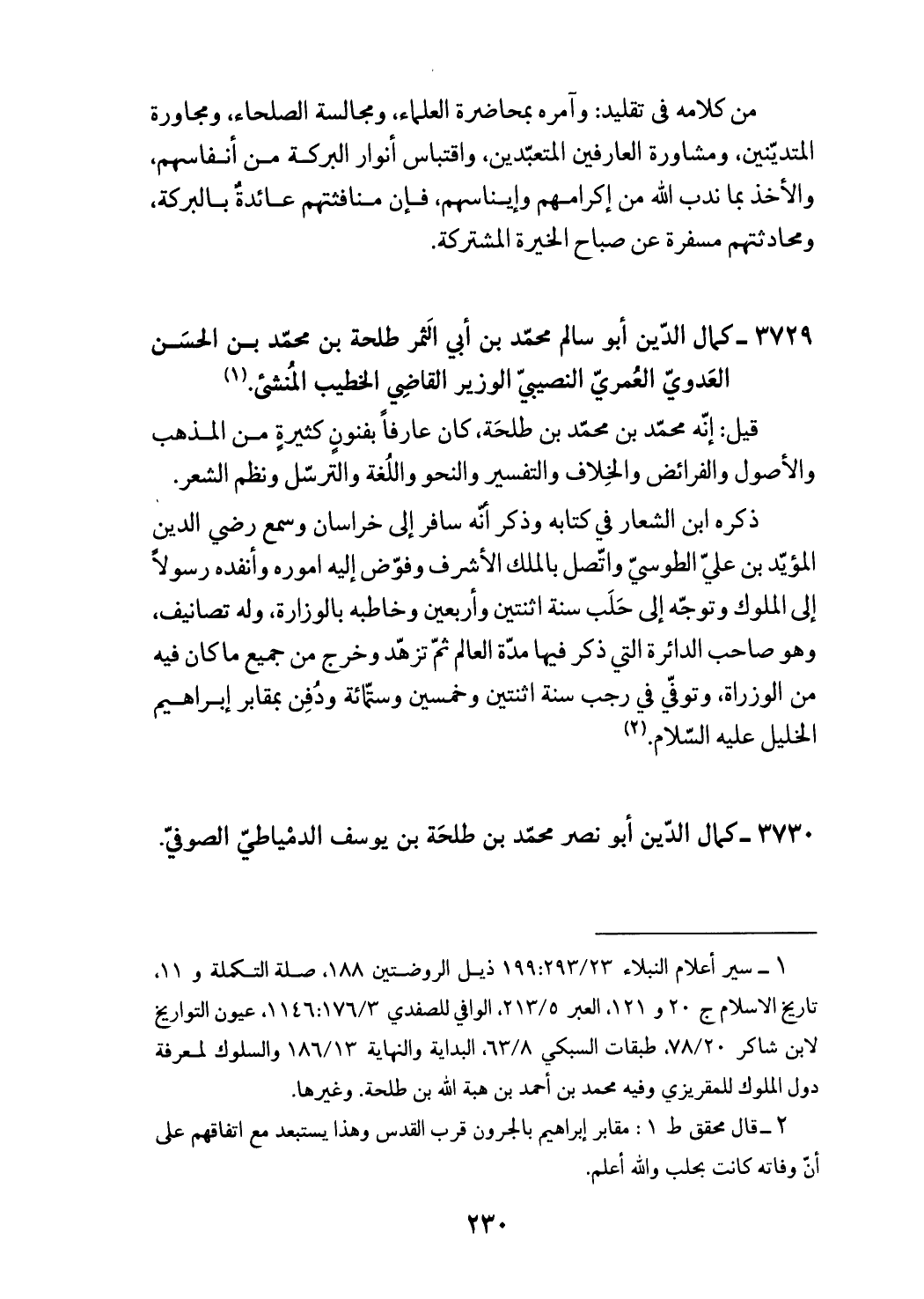 3730 - كمال الدّين أبو نصر محمّد بن طلحة بن يوسف الدمياطيّ الصوفيّ.