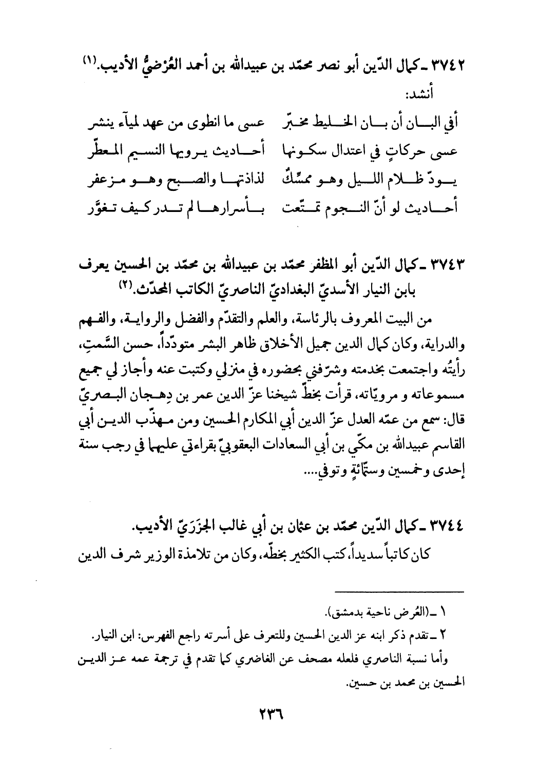 3742 - كمال الدّين أبو نصر محمّد بن عبيد الله بن أحمد العرضيّ الأديب. (¬1)