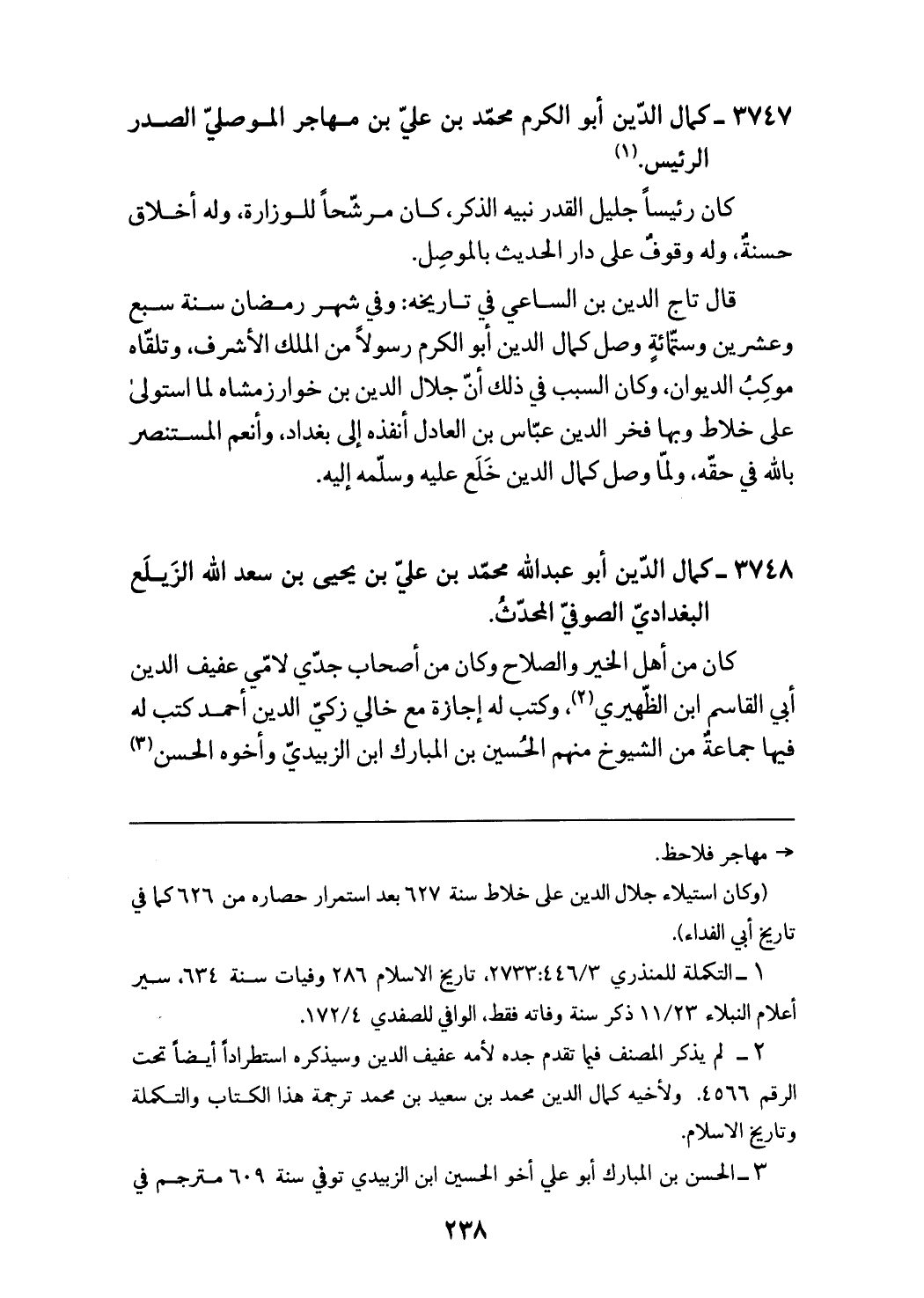3747 - كمال الدّين أبو الكرم محمّد بن عليّ بن مهاجر الموصليّ الصدر