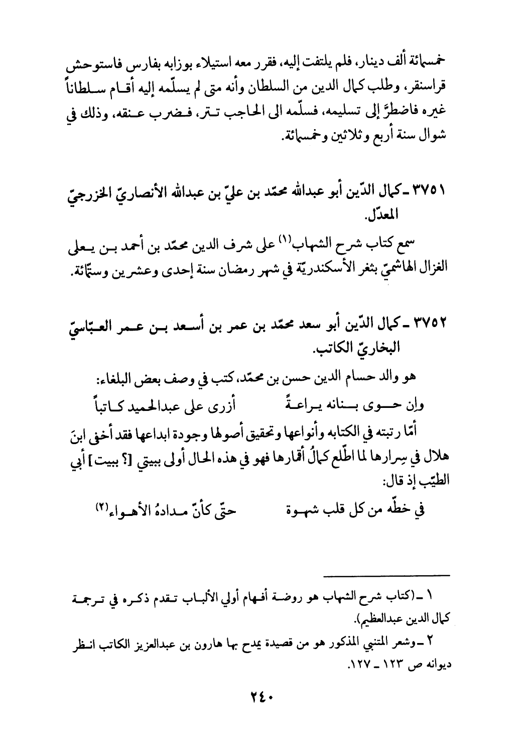 (¬2) وشعر المتنبي المذكور هو من قصيدة يمدح بها هارون بن عبد العزيز الكاتب انظر ديوانه ص 123 - 127.