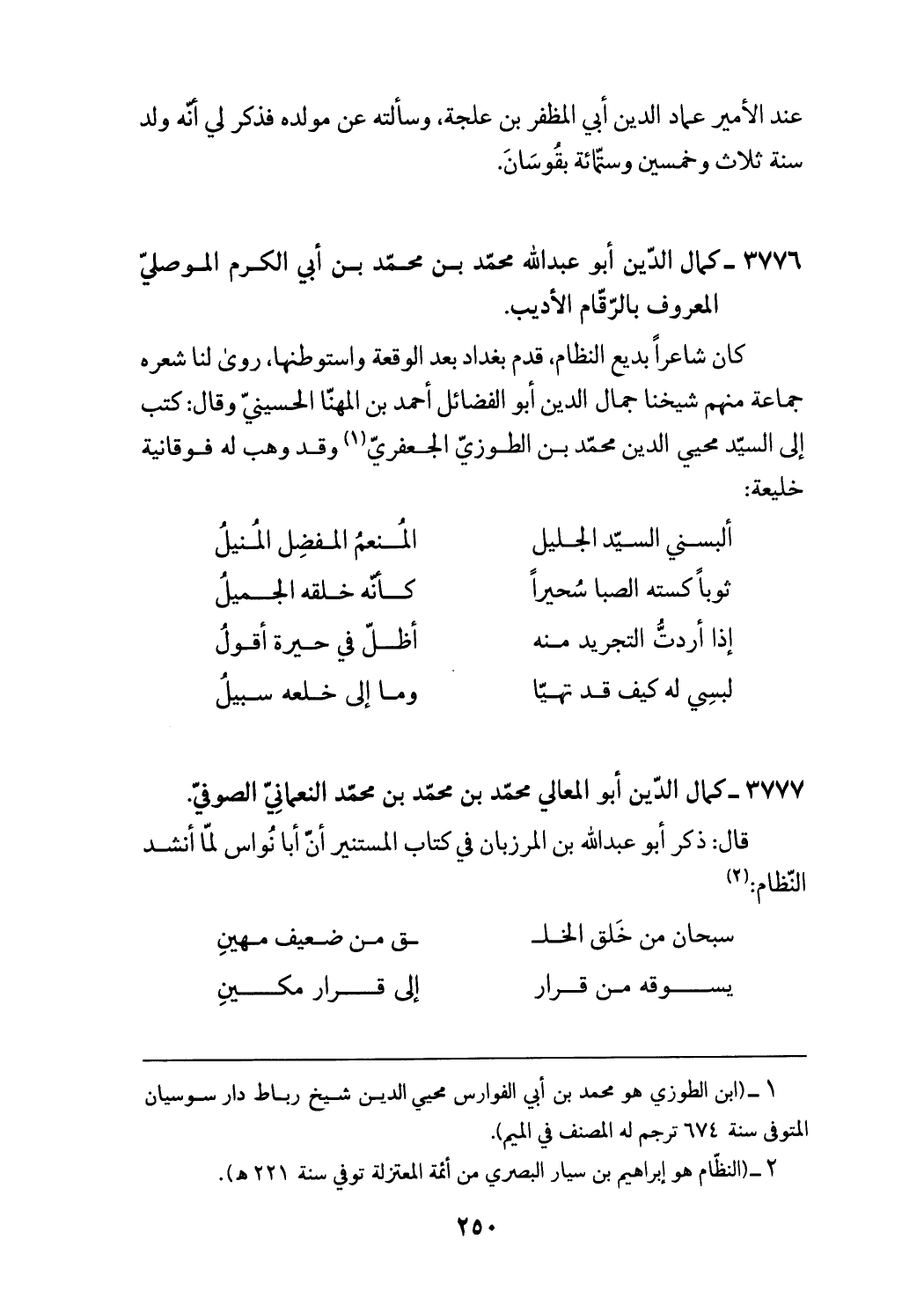 (¬2) (النظّام هو إبراهيم بن سيار البصري من أئمة المعتزلة توفي سنة 221 هـ).