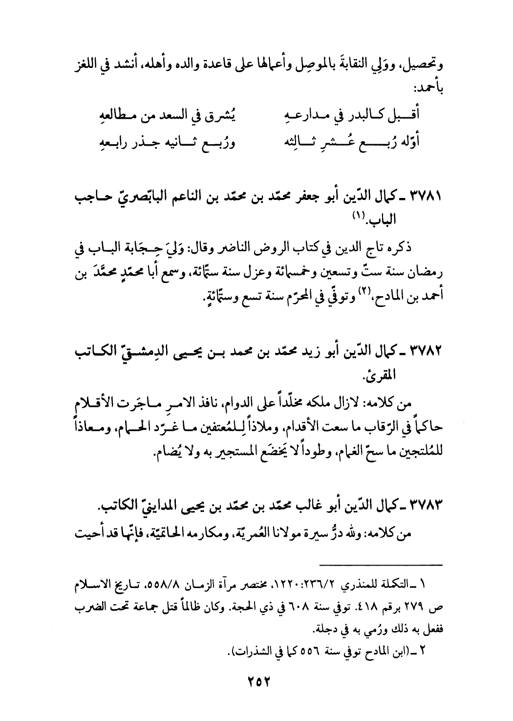 3782 - كمال الدّين أبو زيد محمّد بن محمد بن يحيى الدمشقيّ الكاتب