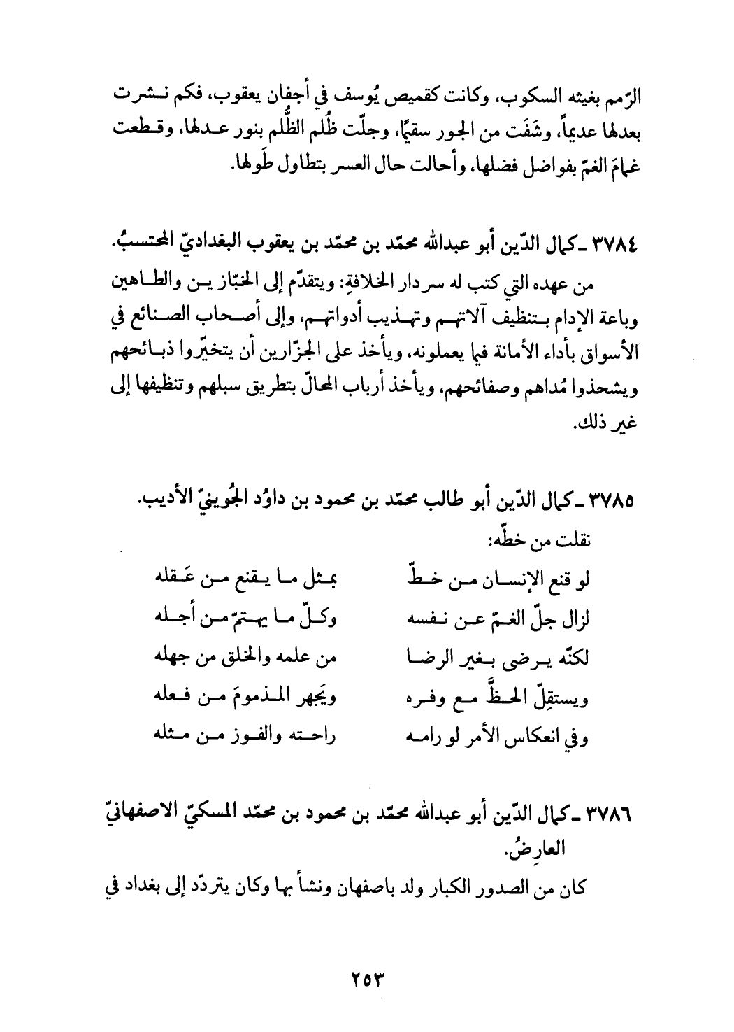 3785 - كمال الدّين أبو طالب محمّد بن محمود بن داود الجوينيّ الأديب.