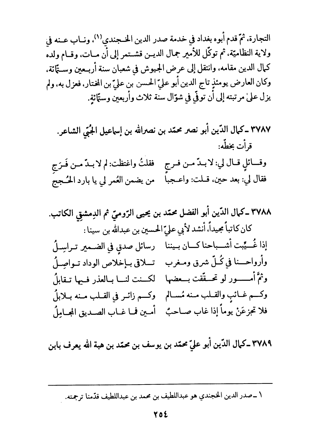 3787 - كمال الدّين أبو نصر محمّد بن نصر الله بن إسماعيل الجبيّ الشاعر.