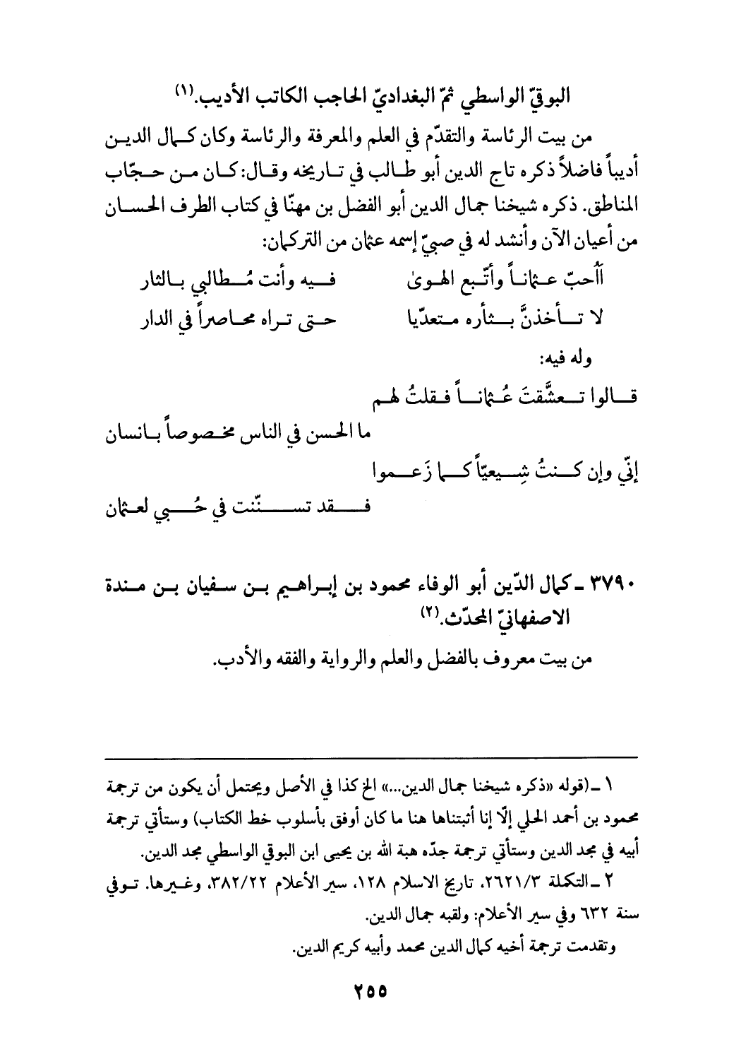 (¬2) التكملة 2621/ 3، تاريخ الاسلام 128، سير الأعلام 382/ 22، وغيرها. توفي سنة 632 وفي سير الأعلام: ولقبه جمال الدين. وتقدمت ترجمة أخيه كمال الدين محمد وأبيه كريم الدين.