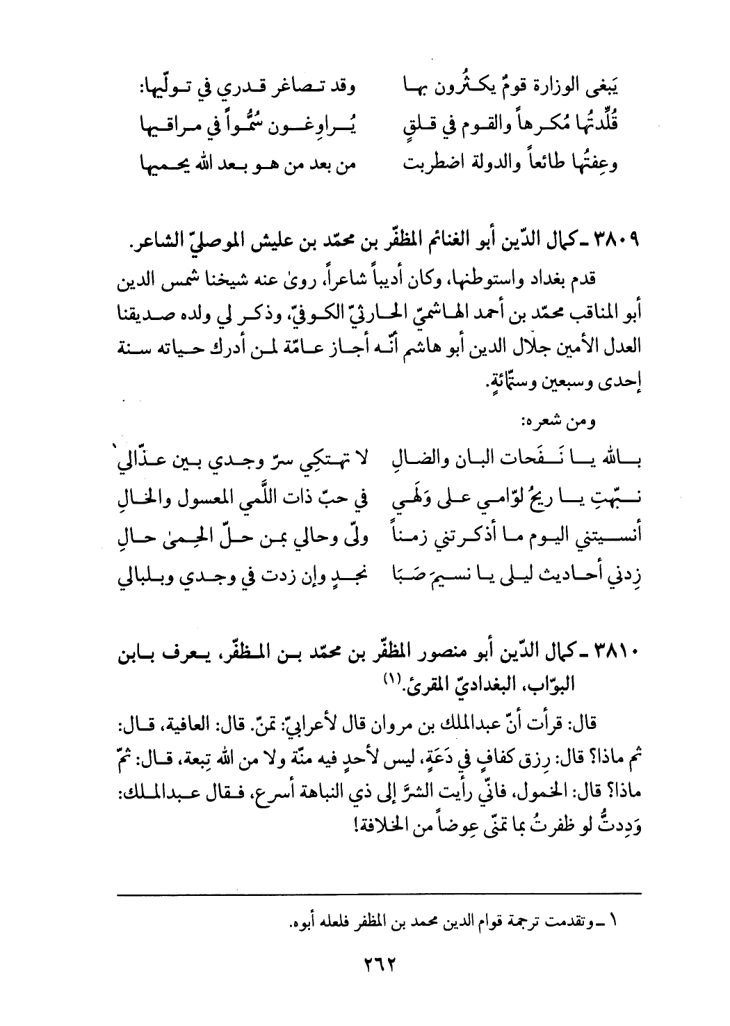 3809 - كمال الدّين أبو الغنائم المظفّر بن محمّد بن عليش الموصليّ الشاعر.