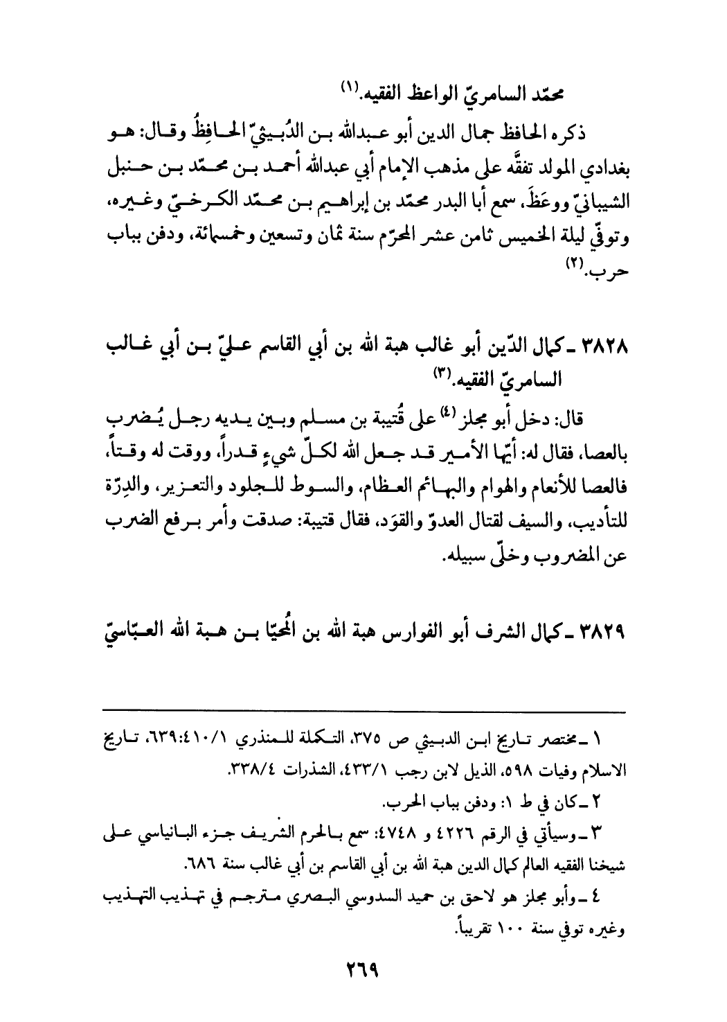 3829 - كمال الشرف أبو الفوارس هبة الله بن المحيّا بن هبة الله العبّاسيّ