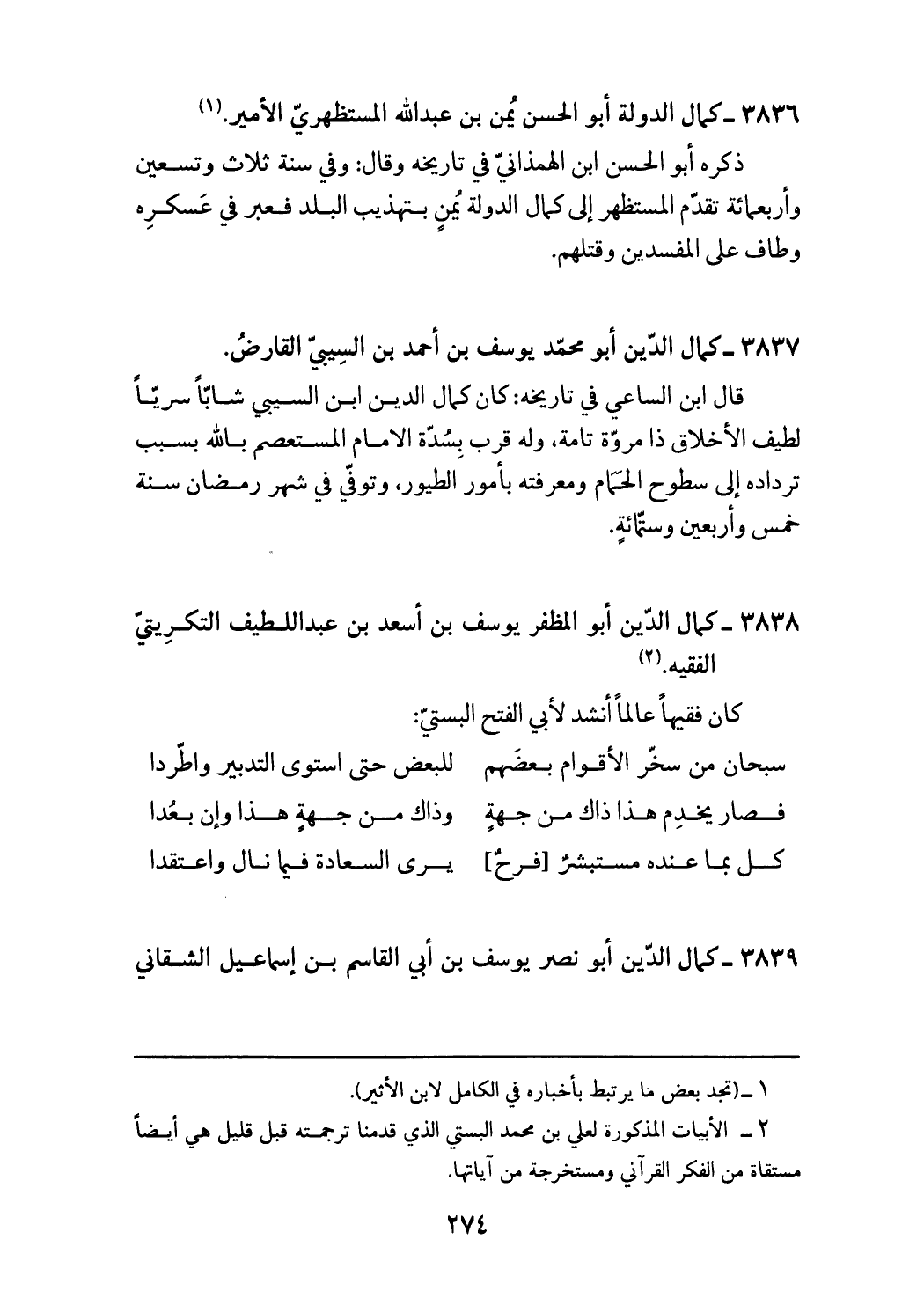 3838 - كمال الدّين أبو المظفر يوسف بن أسعد بن عبد اللطيف التكريتيّ