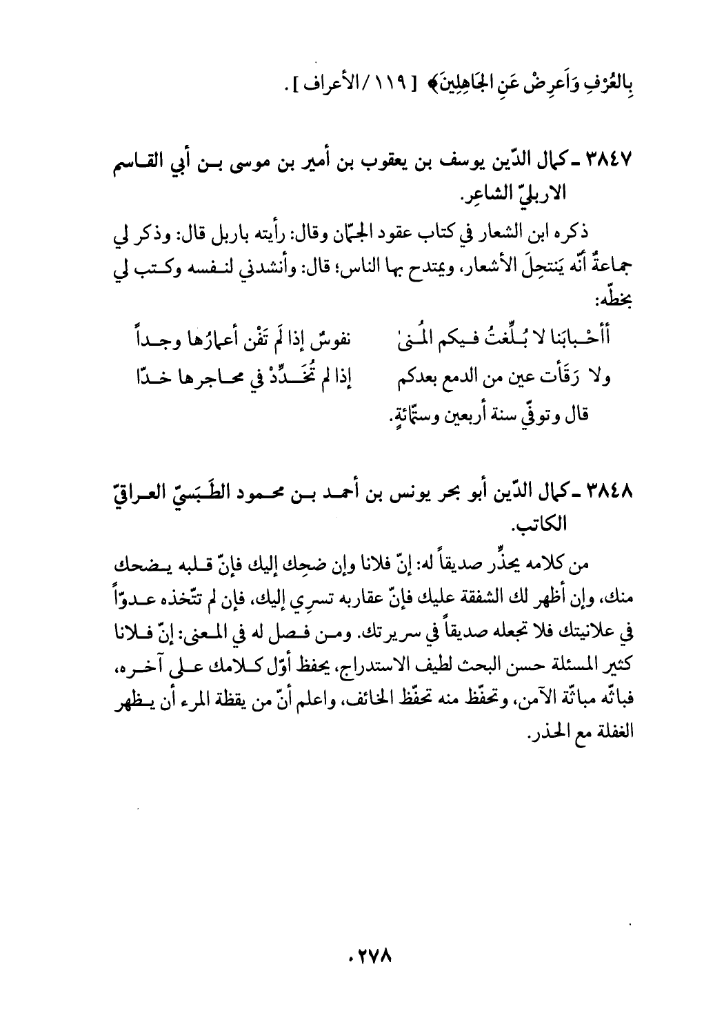 3848 - كمال الدّين أبو بحر يونس بن أحمد بن محمود الطبسيّ العراقيّ